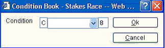 A window will appear for the user to assign a Condition Race number to the Stake race. Enter the number in the box as shown in the example. Press OK.